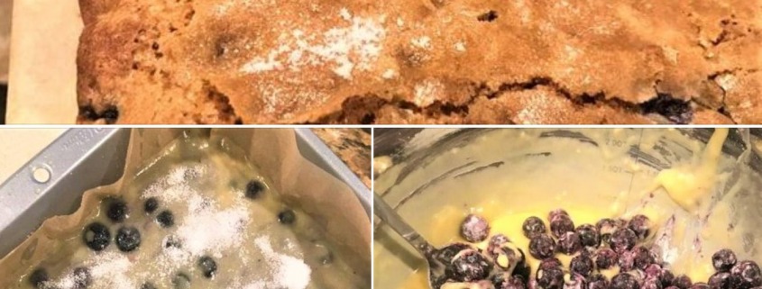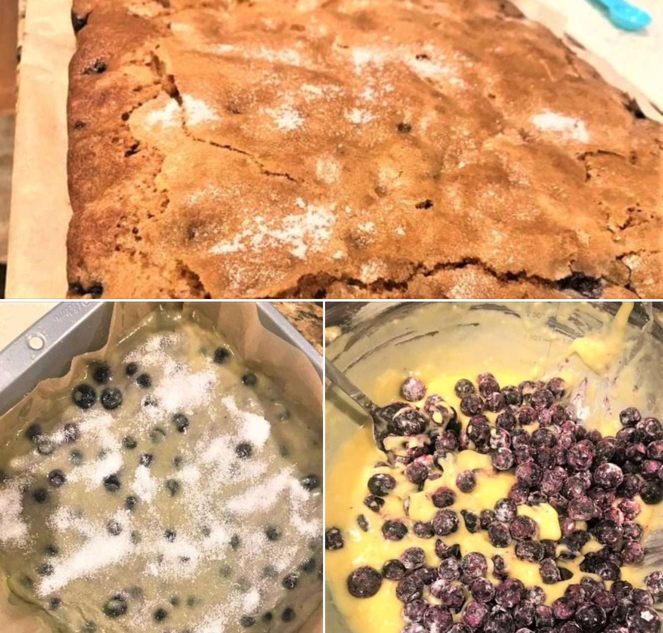 This cake is a delightful summer treat or one to make in the winter when you want the summer taste of blueberries (use frozen blueberries then!)