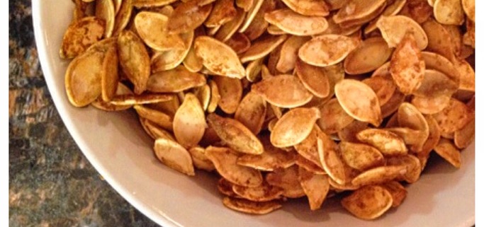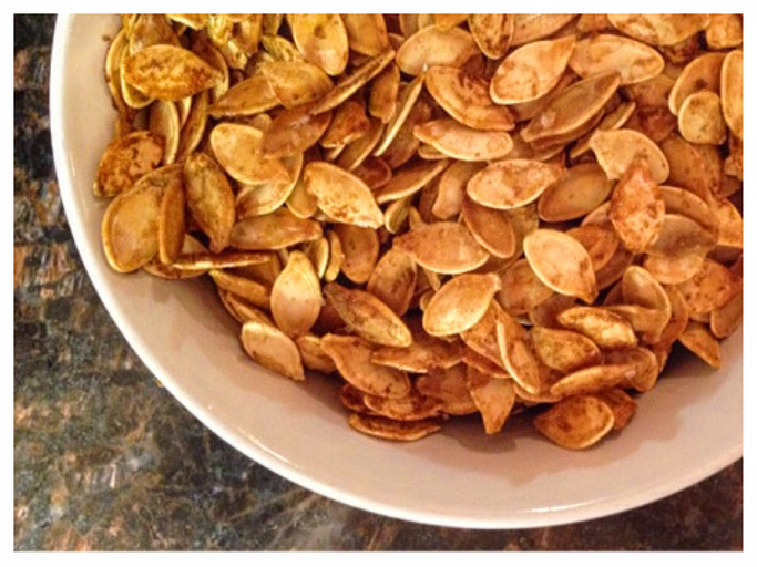 Roasted Pumpkin seeds are a delicious treat to enjoy after carving your pumpkin for Halloween. Save the seeds and roast them, they are good for you-full of vitamins, minerals and fiber!